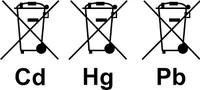 Schadstoffhaltige Batterien sind mit einem Zeichen, bestehend aus einer durchgestrichenen Mülltonne und dem chemischen Symbol (Cd, Hg oder Pb) des für die Einstufung als schadstoffhaltig ausschlaggebenden Schwermetalls versehen: