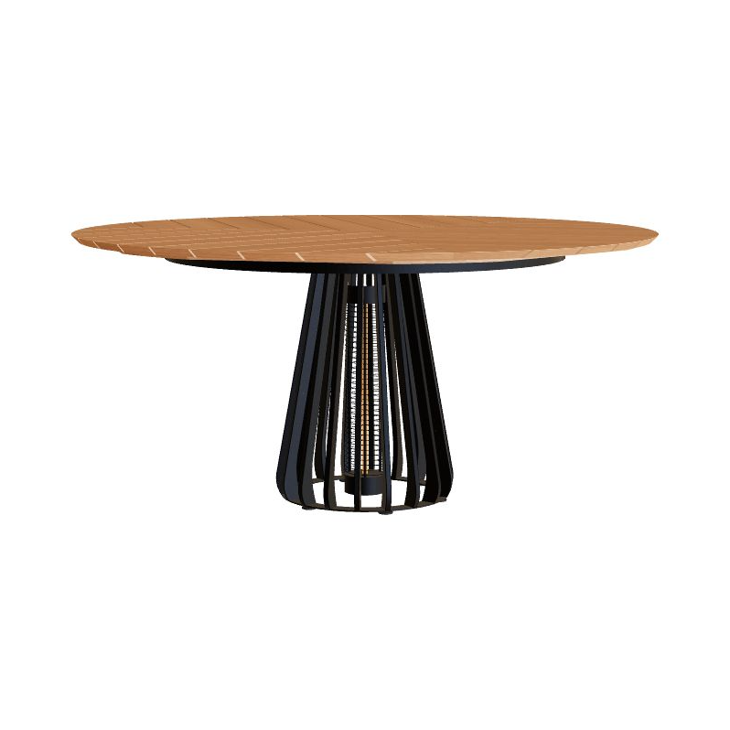 Furniz ist in Standard Dining Höhe und in Low Dining Höhe erhältlich – jeweils in unterschiedlichen Formen und Größen. Je nach Ausführung stehen Tischplatten in Keramik, Teak oder Beton zur Wahl. Hinweis: Das Heizelement ist separat zu bestellen.