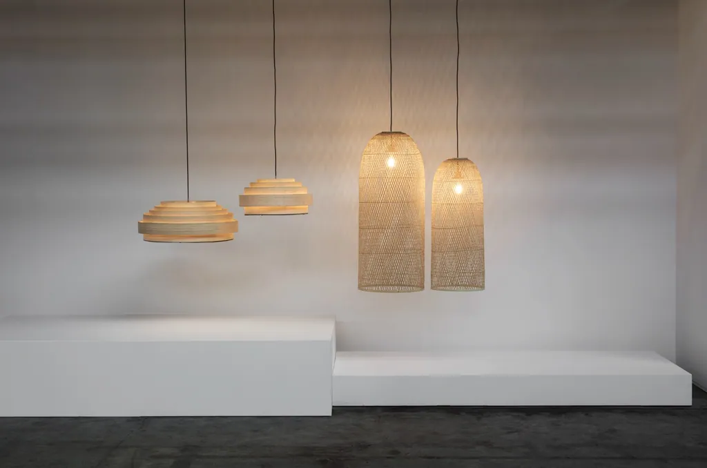 Ay Illuminate verbindet Kunsthandwerk und modernes Design zu Leuchten, die die organische Schönheit natürlicher Materialien widerspiegeln. Jede Leuchte wird aus authentischen, oft handgefertigten Materialien wie Bambus oder Seide hergestellt, die den Leuchten einen einzigartigen, natürlichen Charme verleihen. Durch die Verwendung dieser Materialien entstehen kunstvolle Leuchten, die den Charakter der Natur in den Raum bringen.