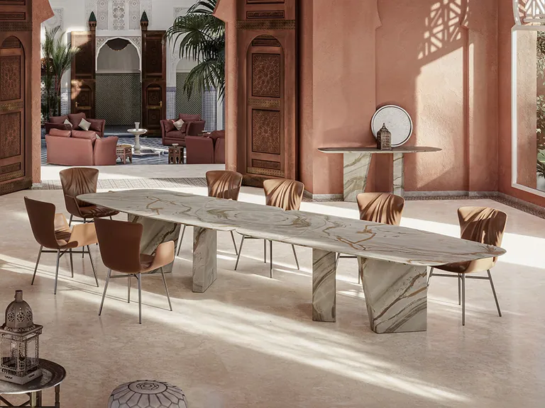 DRAENERT, seit 1968 eine renommierte Möbelmanufaktur am Bodensee, spezialisiert sich auf die exklusive Gestaltung und Fertigung von Designmöbeln, insbesondere Esstischen und Couchtischen. Mit einem einzigartigen Steinpark, der über 150 Natursteinsorten aus der ganzen Welt bietet, ermöglicht das Unternehmen die individuelle Auswahl für Tischplatten, die jedes Möbelstück zu einem Unikat machen.