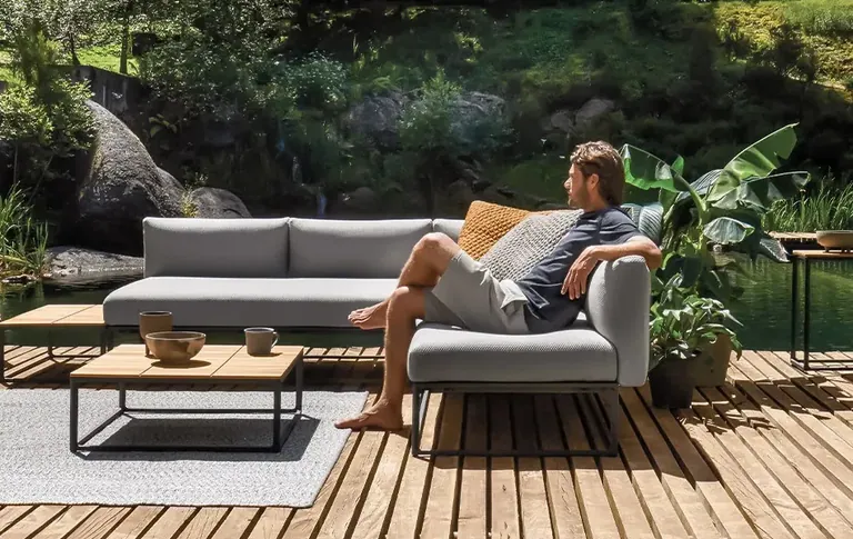Lounge – aus dem Hause Gloster Die Gloster Outdoor Kollektion Maya besteht aus einer Reihe von Lounge-Elementen mit einladenden, bequemen Sitz- und Rückenkissen. Breite horizontale Linien und durchsetzungsstarke Winkel verbinden sich zum mutigen, nachsichtigem Profil. Maya wurde von dem Designer Mark Gabbertas entworfen. Die Gestaltung der Kollektion basiert auf dem Prinzip des klassischen Gloster Cloud-Rahmens, sie verkörpert die Raffinesse der neuen Designphilosophie mit einer besonderen Aufmerksamkeit auf die Materialien und Technologien, die an der kreativen Front des Gartenmöbeldesigns stehen. Es ist oft einfacher für einen Designer, von vorne zu beginnen, anstatt ein vorhandenes Design zu verbessern. Das war die Herausforderun: Die sanfte, aber sinnvolle Weiterentwicklung einer bestehenden Idee. Den Geist des Originals zu bewahren und gleichzeitig aufzufrischen. Das Maya-Gestell ist aus einem ultraschlanken, pulverbeschichteten Aluminiumprofil hergestellt, die Beine aus Aluminiumguss ausgearbeitet. Wetterfeste Polsterung in vier Stoffklassen bereichert die Kollektion und macht die Maya Loungegruppe zu einem echten Hingucker in Ihrem Garten oder auf der Terrasse.