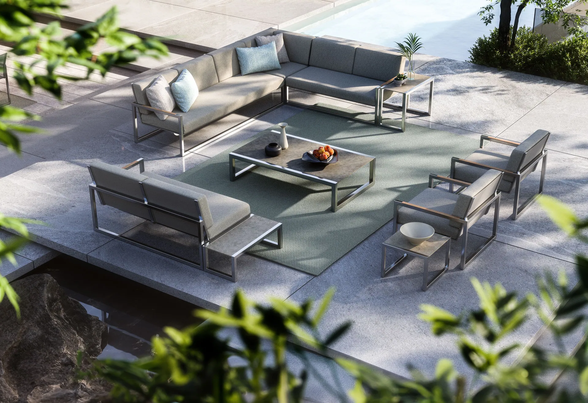 Die Ninix Kollektion von Royal Botania (Design: Kris Van Puyvelde) steht für klare Linien und kompromisslose Materialqualität – ein Outdoor-Programm, das „minimalist design meets technical precision“ auf den Punkt bringt. Subtile Details wie integrierte Armauflagen, Batyline-Slings, verdeckte Rollen und durchdachte Mechaniken sorgen für Komfort ohne visuelle Unruhe.