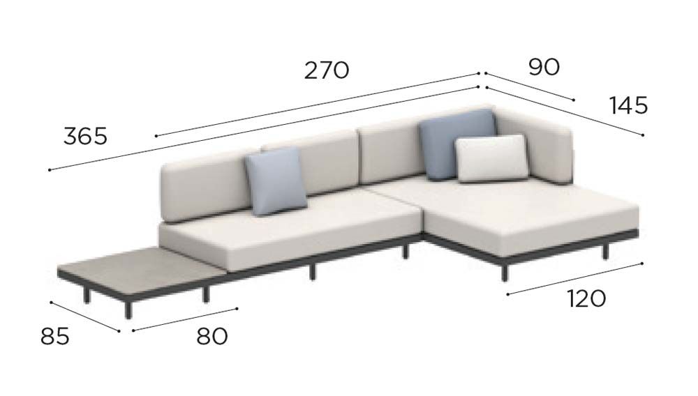 365 × 145 × 80 cm