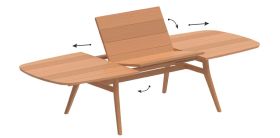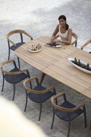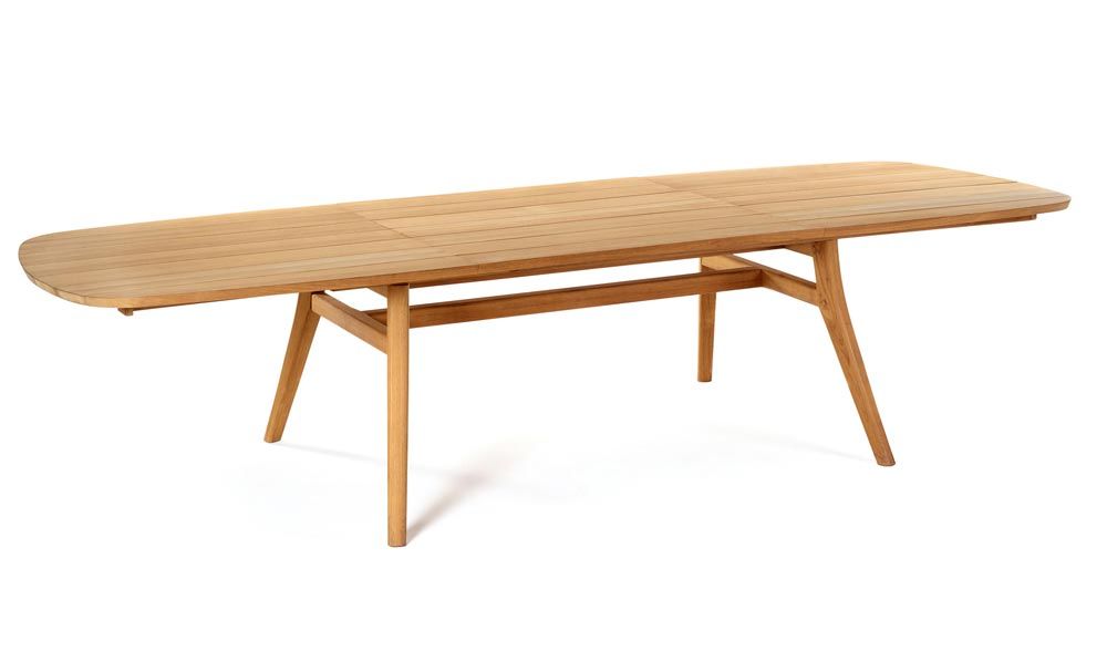 Royal Botania Zidiz Outdoor Ausziehtisch mit Teakholzplatte. Gartentisch mit einer sanftgewölbten Tischplatte, eingehängt in einen organisch geformten Gestell bildet eine perfekte Kombination.