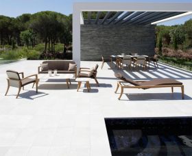 Die Royal Botania Zidiz Reihe besteht aus zwei möglichen Tischen sowie Stühlen, alle im selben minimalistischen Design gehalten. Besonders auffallend ist das Tisch- und Stuhlgestell mit Aluminium- oder Teakholzgestell und Teakholzplatte. Dieses spezielle Holz wurde organisch geformt und hat einen sehr hübschen, warmen Braunton. Es ist sehr wetterbeständig. Gleiches trifft auch für die Sitzfläche des Royal Botania Zidiz Armlehnstuhls zu, die aus Aluminiumblech geformt wurde sowie die Tischplatten. Bei diesen kann zwischen Keramik oder dem Material Kerrock gewählt werden, wobei beide sehr pflegeleicht sind.